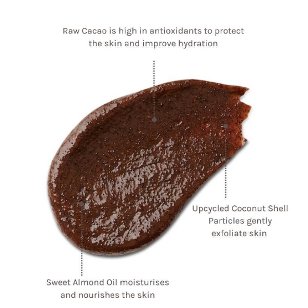 2 in 1 Gezichtsmasker van rauwe cacao en klei reinigt, verzacht, hydrateert en kalmeert de huid. Kleine kokosnoot deeltjes exfoliëren de huid, waardoor deze heerlijk zijdezacht aanvoelt.