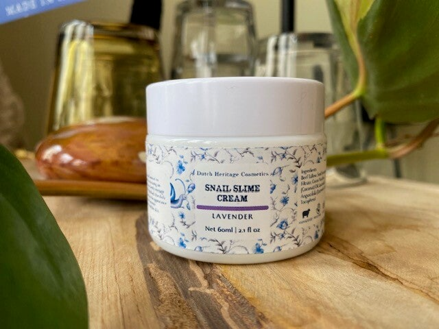 Ingrediënten:Rundervet, Slakkenslijmfiltraat , Cocos Nucifera (Kokos) Olie, Lavandula Angustifolia (Lavendel) Olie, Tocopherol